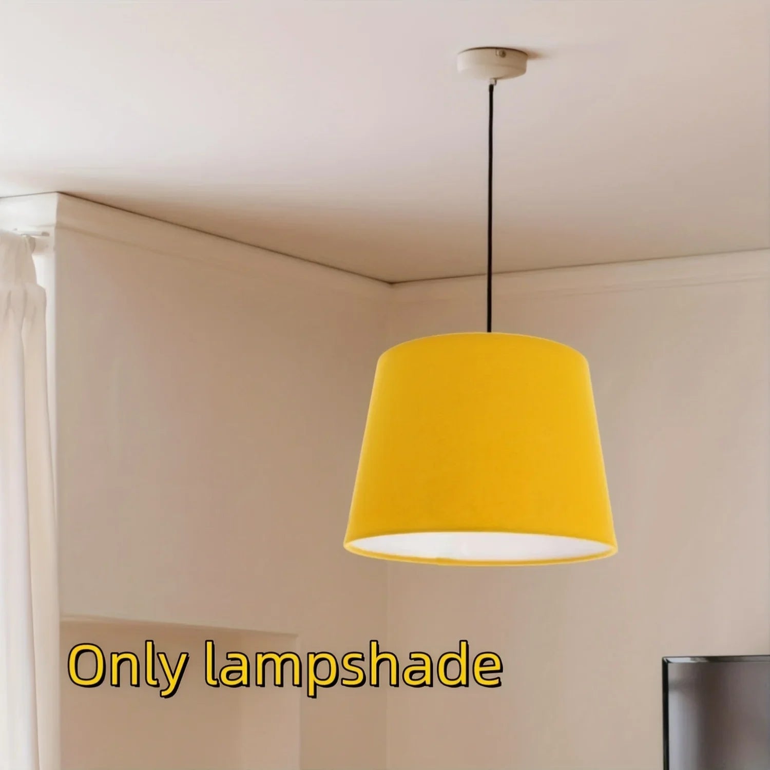 1pc Modern Drum-Shaped Yellow Linen Lampshade