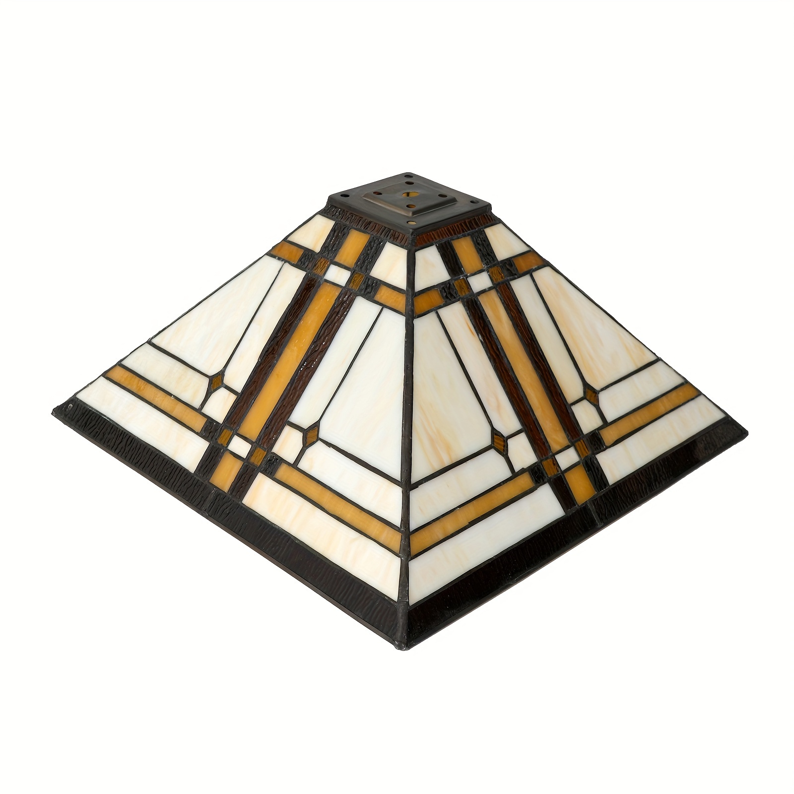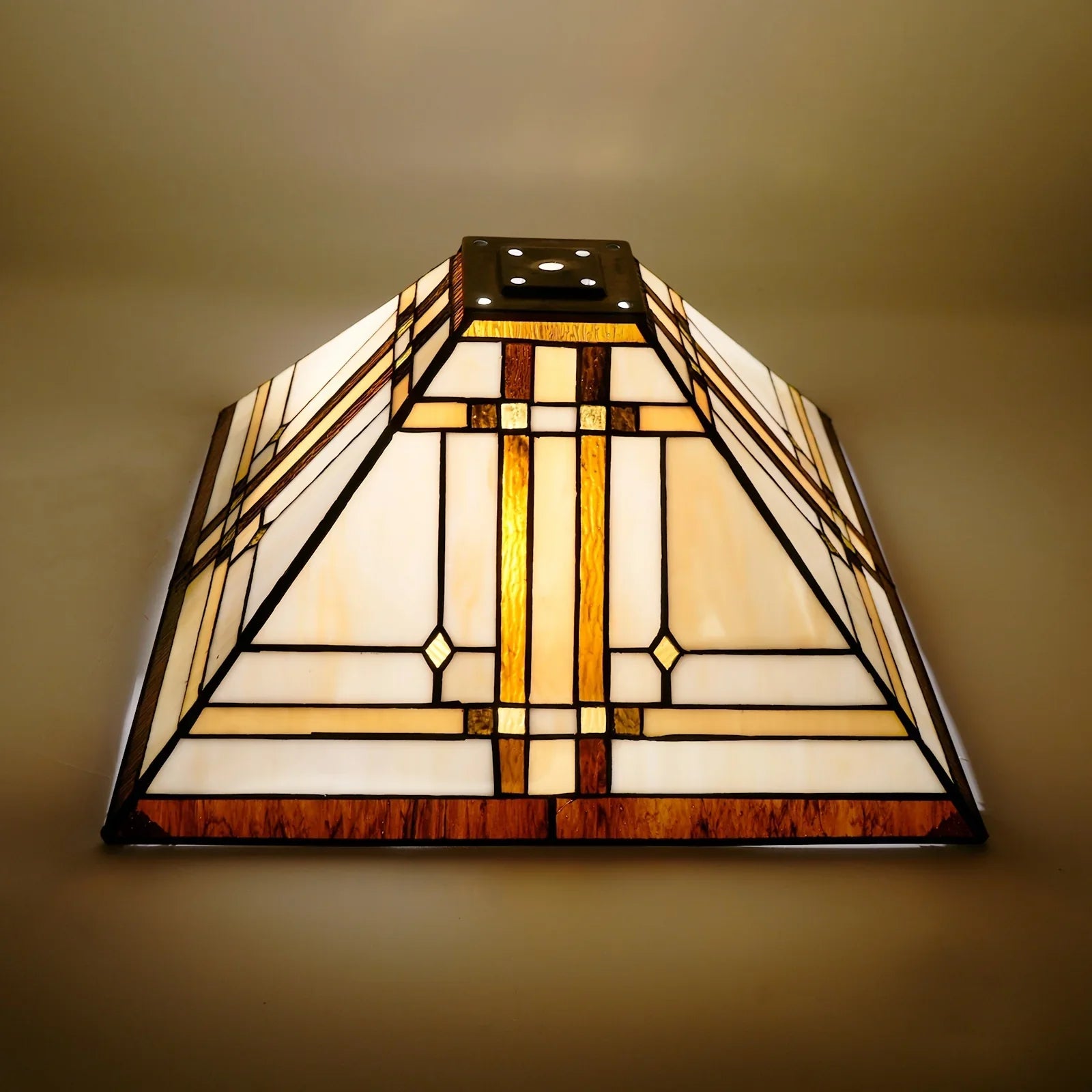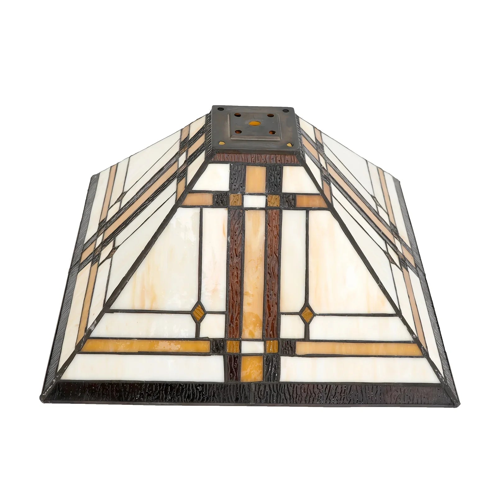 20-Inch Wide Retro Square Stained Glass Lampshade