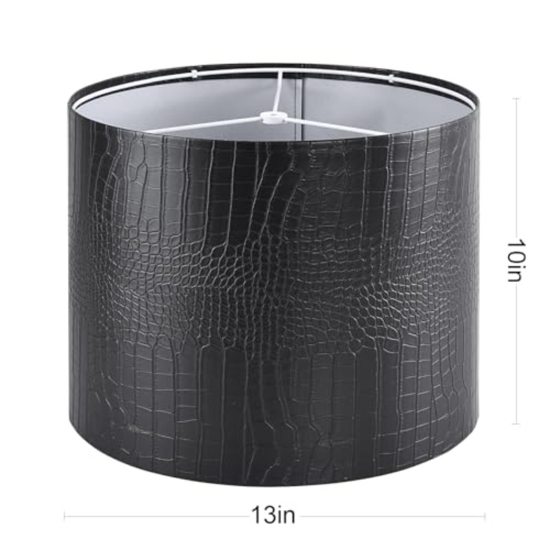 Adjust the lamp shades around the metal rings by inserting them into the clips; it's a straightforward and fast setup that takes just a minute. Versatile use: The lampshade is crafted from black synthetic leather resembling crocodile skin, allowing it to blend effortlessly with different color palettes and styles, including modern, medieval, vintage, country cottage, and urban designs. Its simple yet elegant design will bring a laid-back charm to your living room lighting.