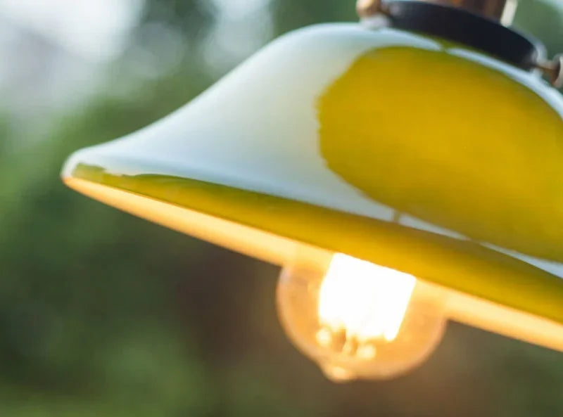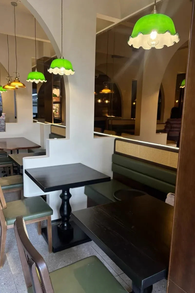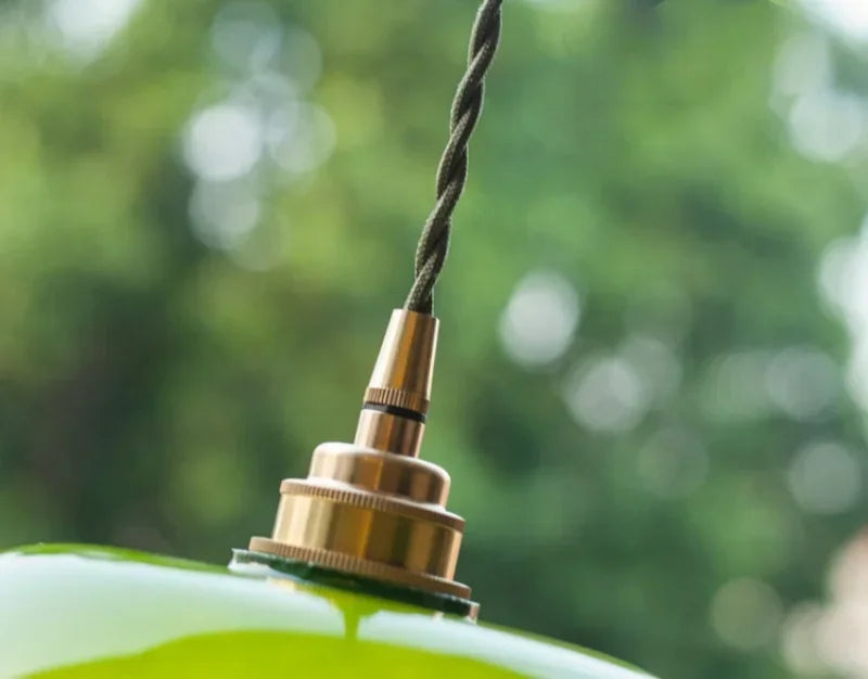 IWHD Green Lotus Lampshade LED Pendant Lights Cafe Restaurant Bar Loft Living Room American Vintage Brass Glass Hanging Lamp