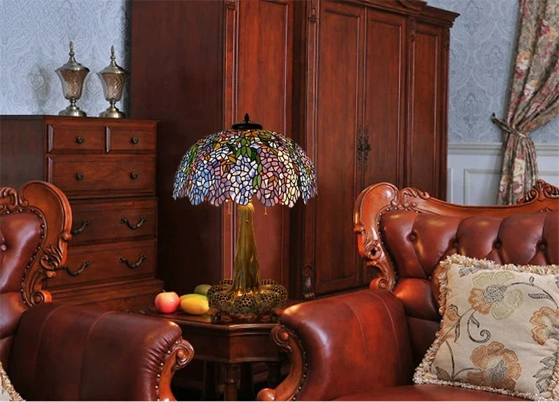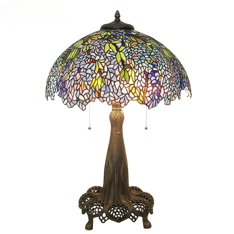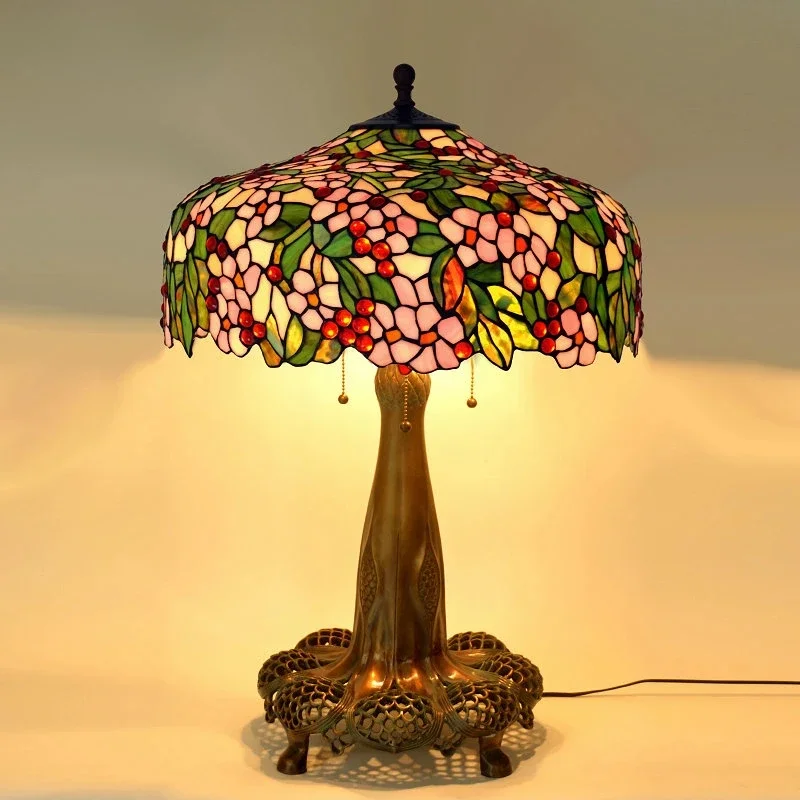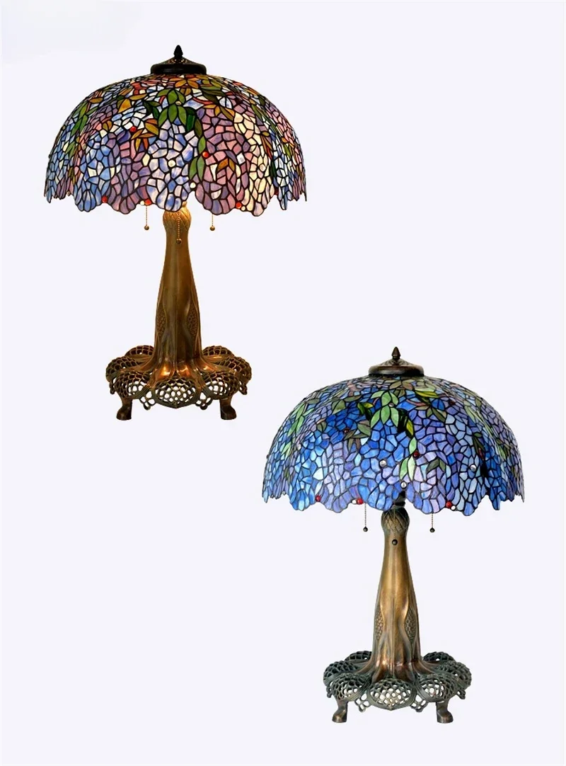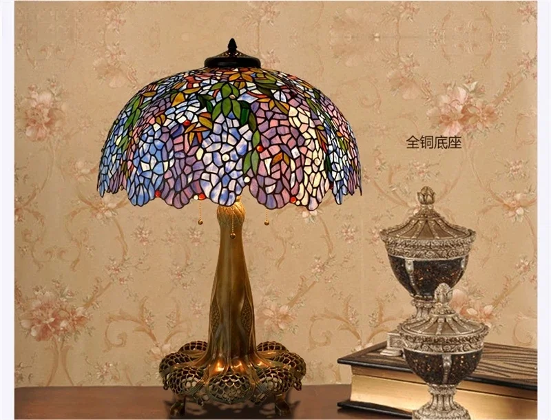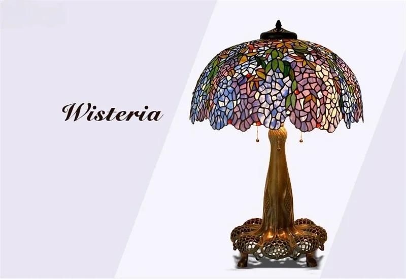Tiffany Style Desk Lights Grape Purple Yellow Wisteria Vival Cherry Fruite Multicolor Stained Glass Table Lamp Cast Copper Antique Hollow Out Tree Frame Decor Luxurious Tall 20 22 Inch LightingHand-made / 100% Jade Stained Glass Lampshade/ Collection value/ Creative Tiffany It's Not Just A Lamp, It's A Work Of ArtWelcome To Customize Tiffany Lamps!Product Description:Material: Copper Or Alloy Frame+ Jade Stained GlassLight Source :Led BulbsBasic types : E27 * 3 LEDVoltage : 86V -240VShade Color: MulticolorWarranty: 5 YearsCraft: HandicraftBasic Assembly Is NecessaryWe are a professional tiffany lighting factory!! Accept Color And Size Customization.Enjoy Art At Home, The More You See, The More Interesting It Is.