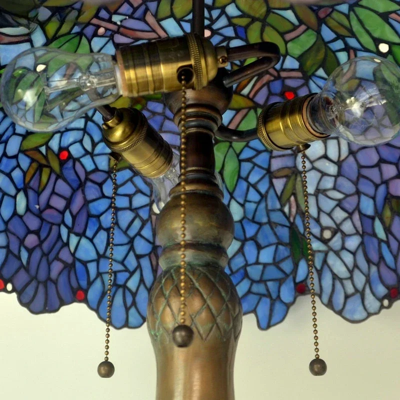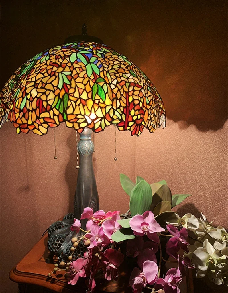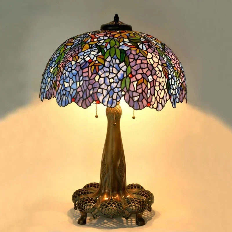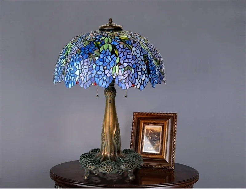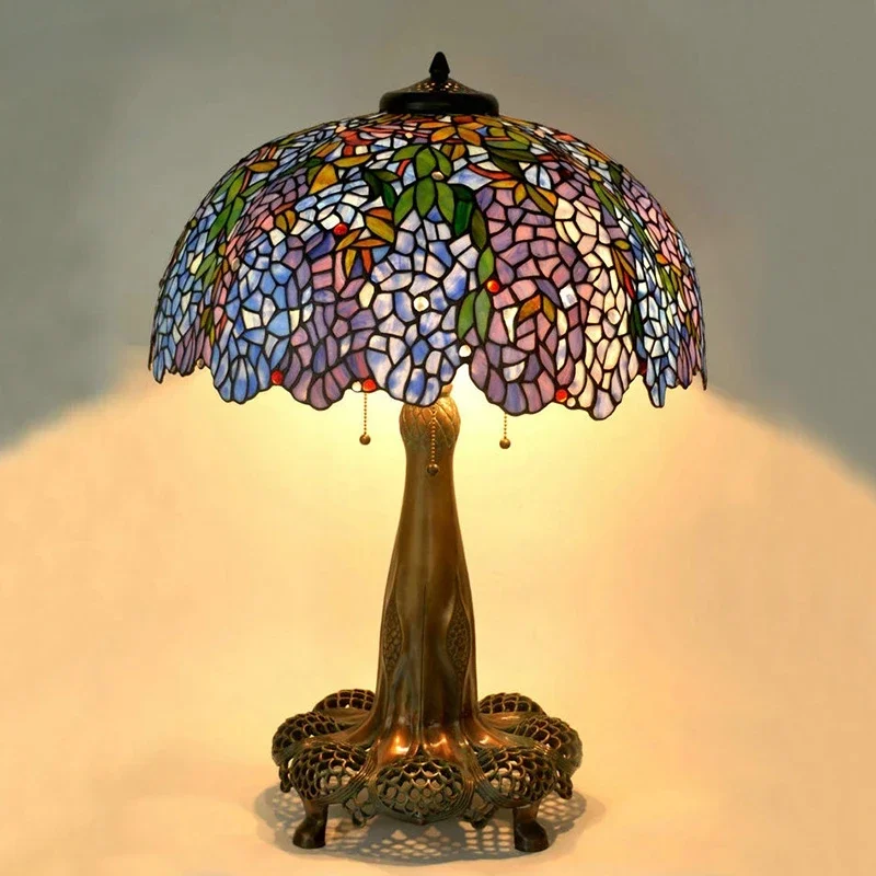 Tiffany Style Desk Lights Grape Purple Yellow Wisteria Vival Cherry Fruite Multicolor Stained Glass Table Lamp Cast Copper Antique Hollow Out Tree Frame Decor Luxurious Tall 20 22 Inch LightingHand-made / 100% Jade Stained Glass Lampshade/ Collection value/ Creative Tiffany It's Not Just A Lamp, It's A Work Of ArtWelcome To Customize Tiffany Lamps!Product Description:Material: Copper Or Alloy Frame+ Jade Stained GlassLight Source :Led BulbsBasic types : E27 * 3 LEDVoltage : 86V -240VShade Color: MulticolorWarranty: 5 YearsCraft: HandicraftBasic Assembly Is NecessaryWe are a professional tiffany lighting factory!! Accept Color And Size Customization.Enjoy Art At Home, The More You See, The More Interesting It Is.