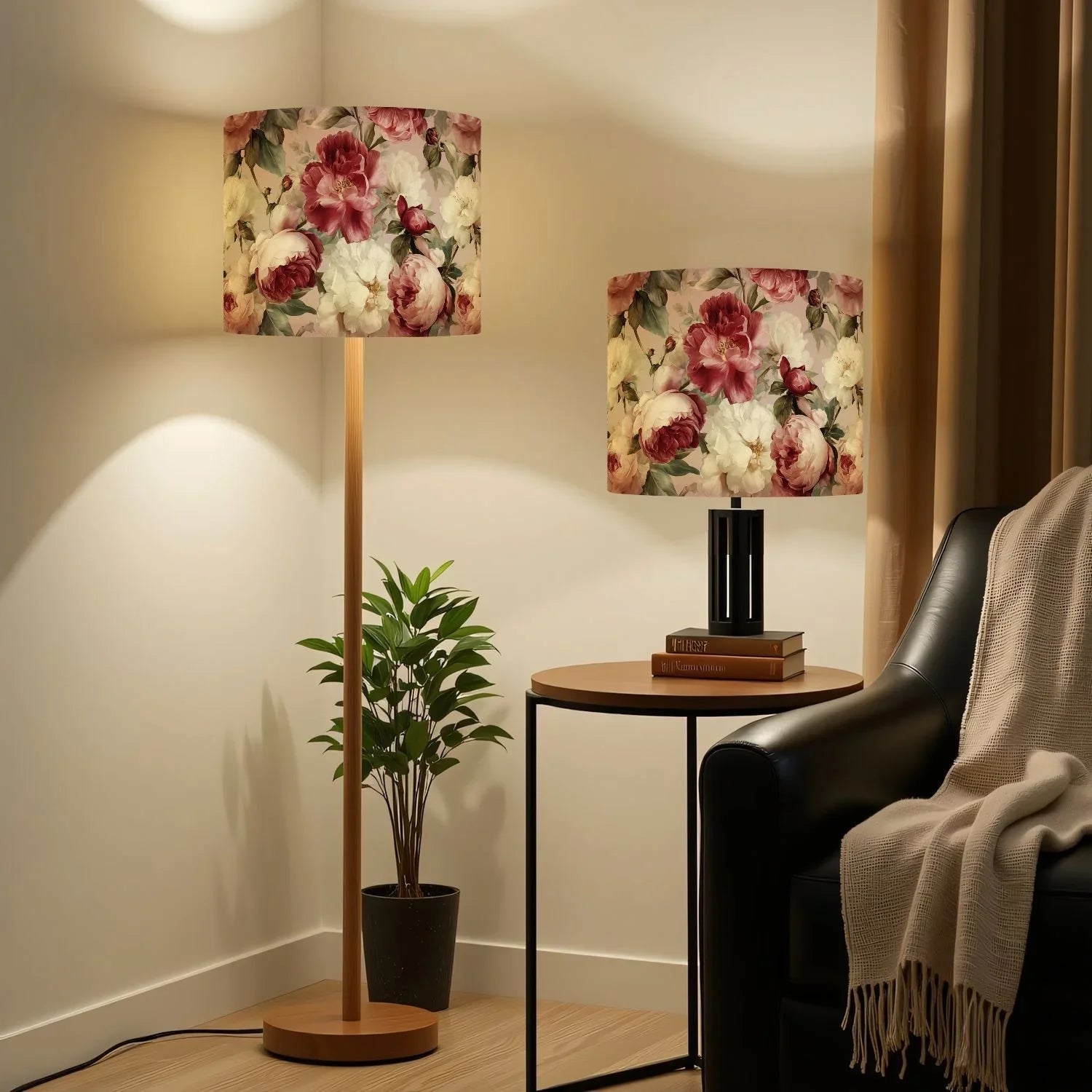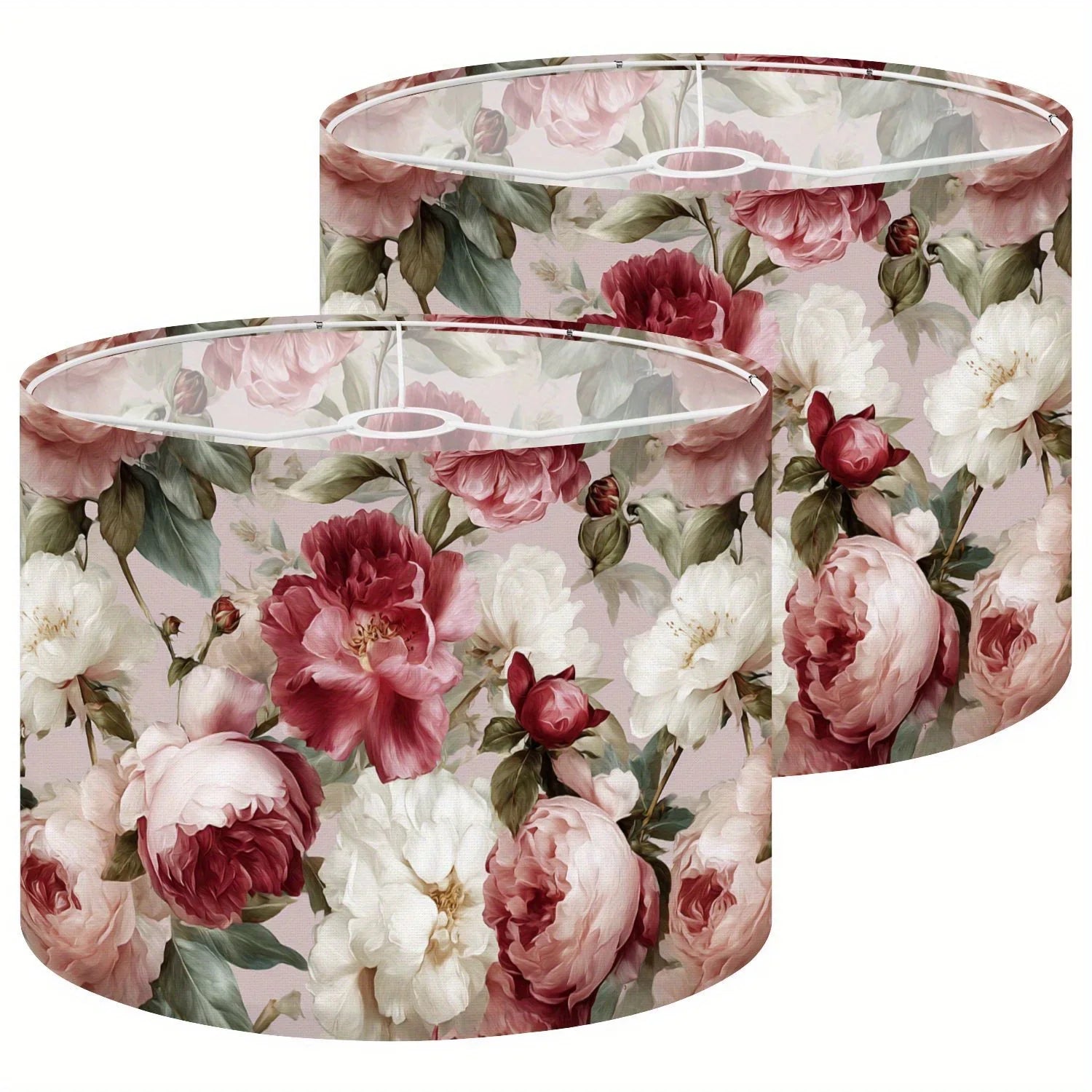 Replacement Lampshades with Pink/White/Red/Green Peonies, Modern Table Light Shade for Home Office, Living Room, Bedroom - Compatible with Standard Desk Lamps (12.99x9.84 Inches) - Dec