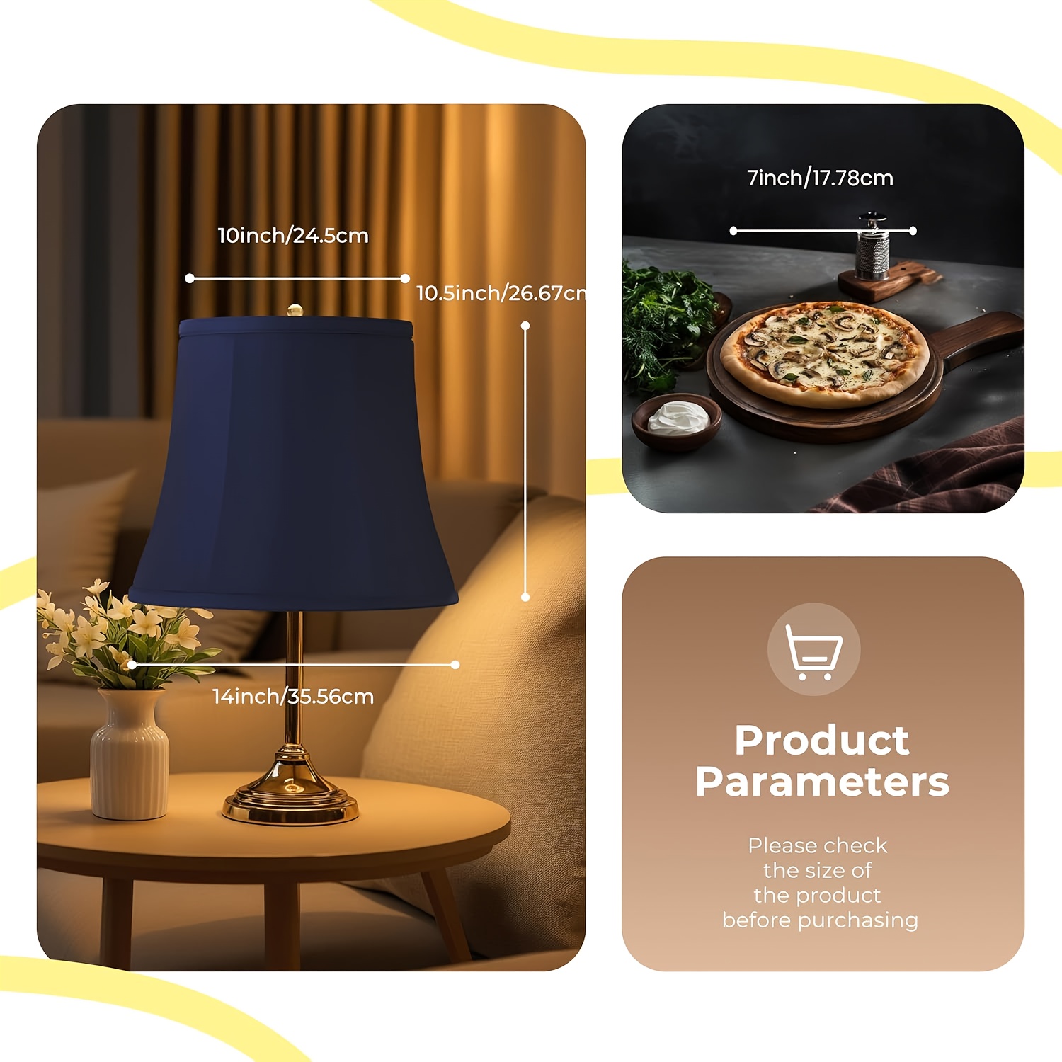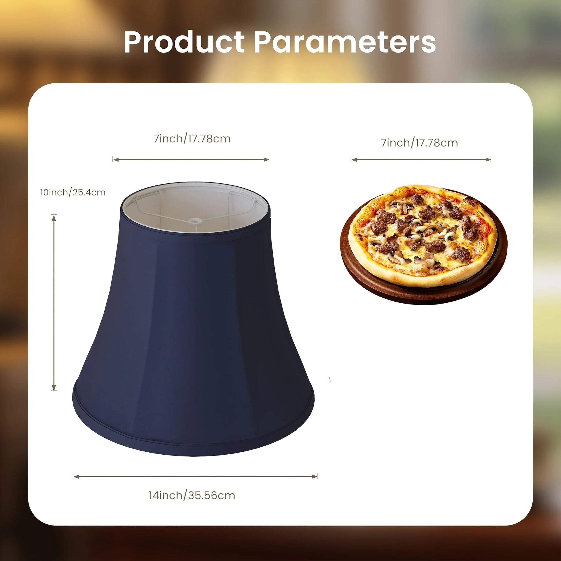This lampshade has a top diameter of 10 inches, a bottom diameter of 14 inches, and a height of 10.5 inches, making it suitable for a variety of table and floor lamps. Always check the dimensions of your fixture to guarantee a proper fit.
