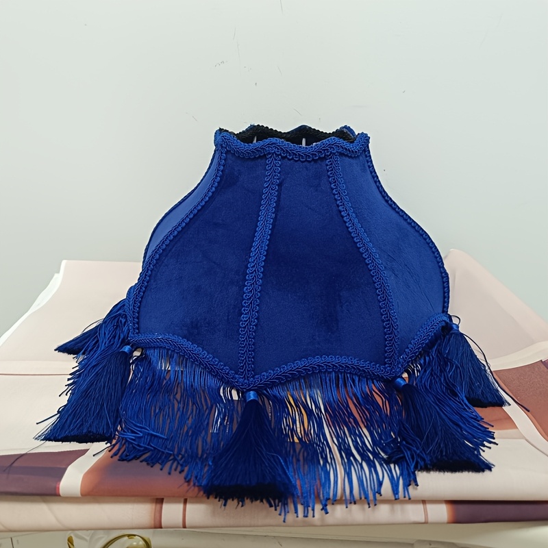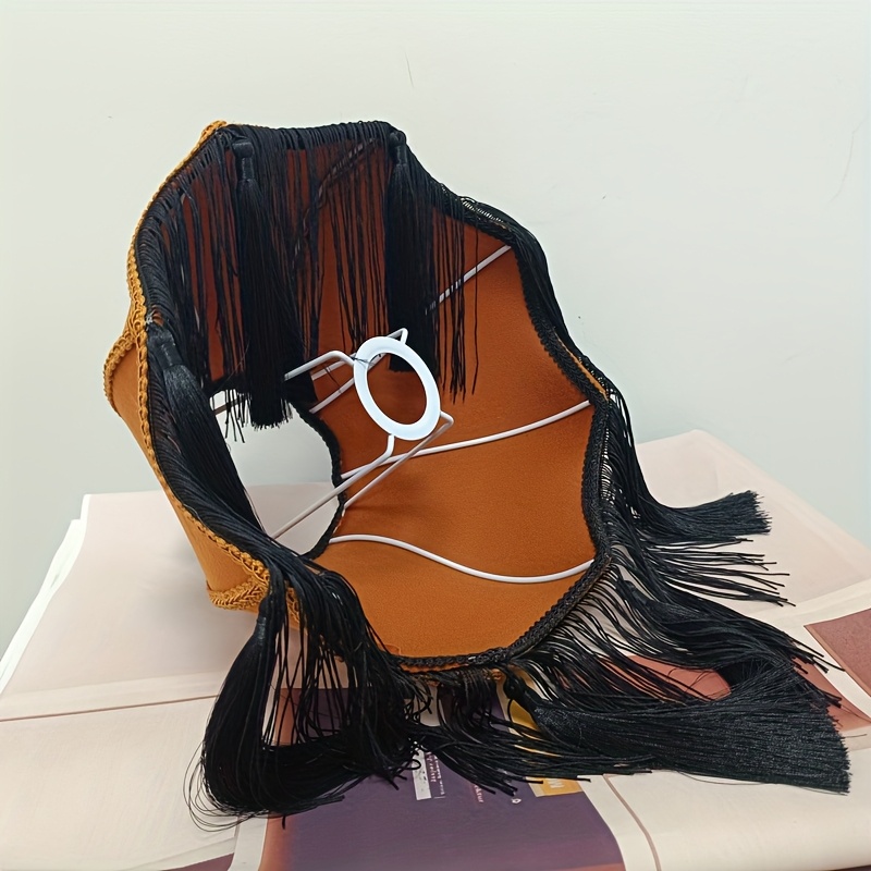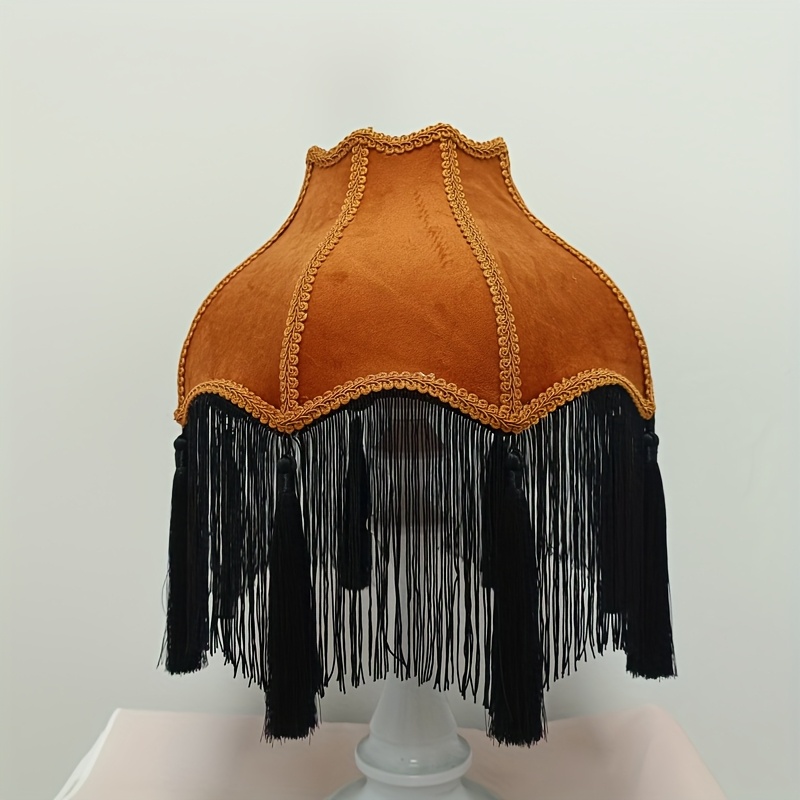 Deep Orange/Black/Blue/Pink/Peach/Brown - Fabric Shade with Clear Top & Black/ Golden/Beige Fringe - Decorative Fixture for Home, Table, Floor, Ceiling - Comp