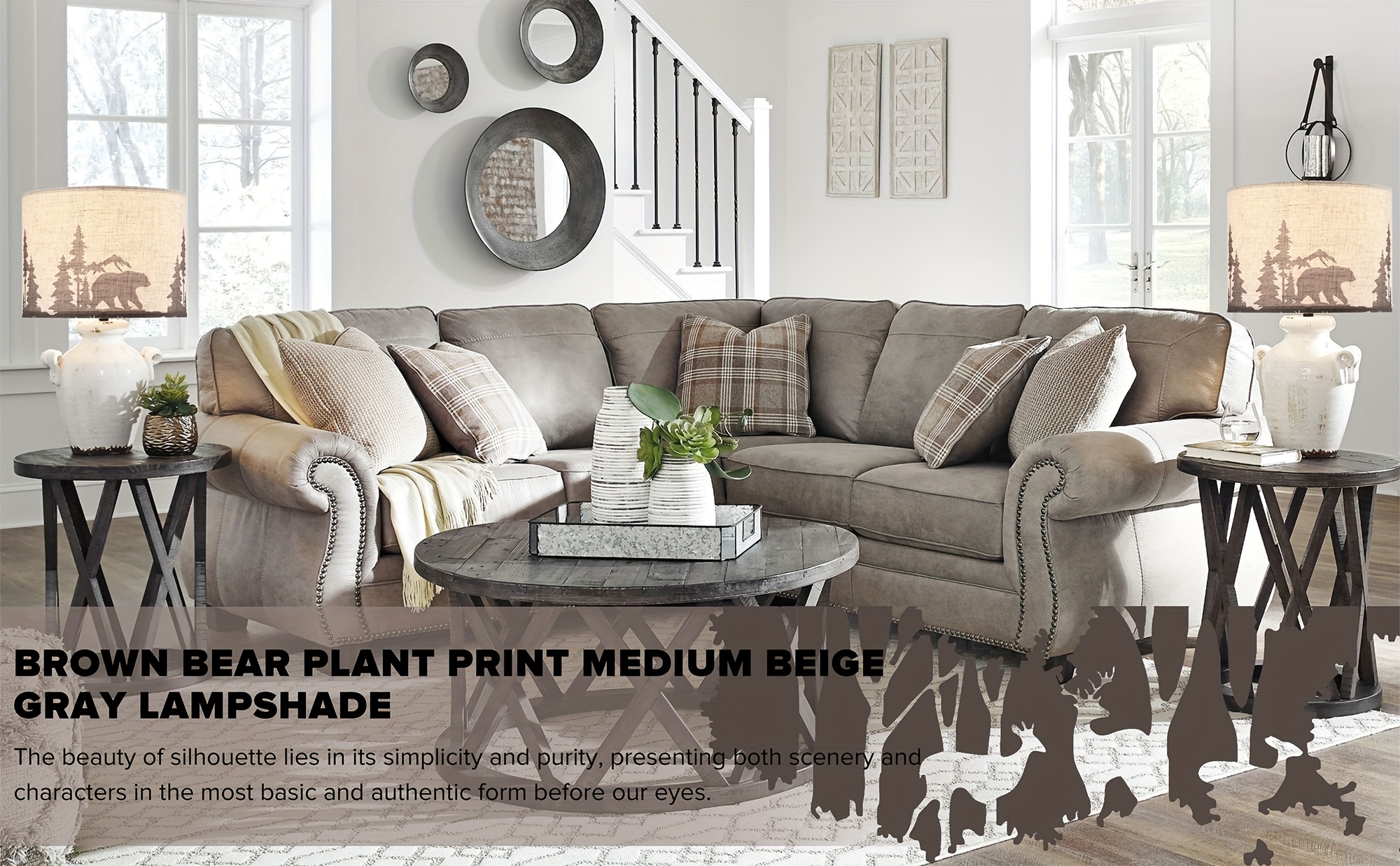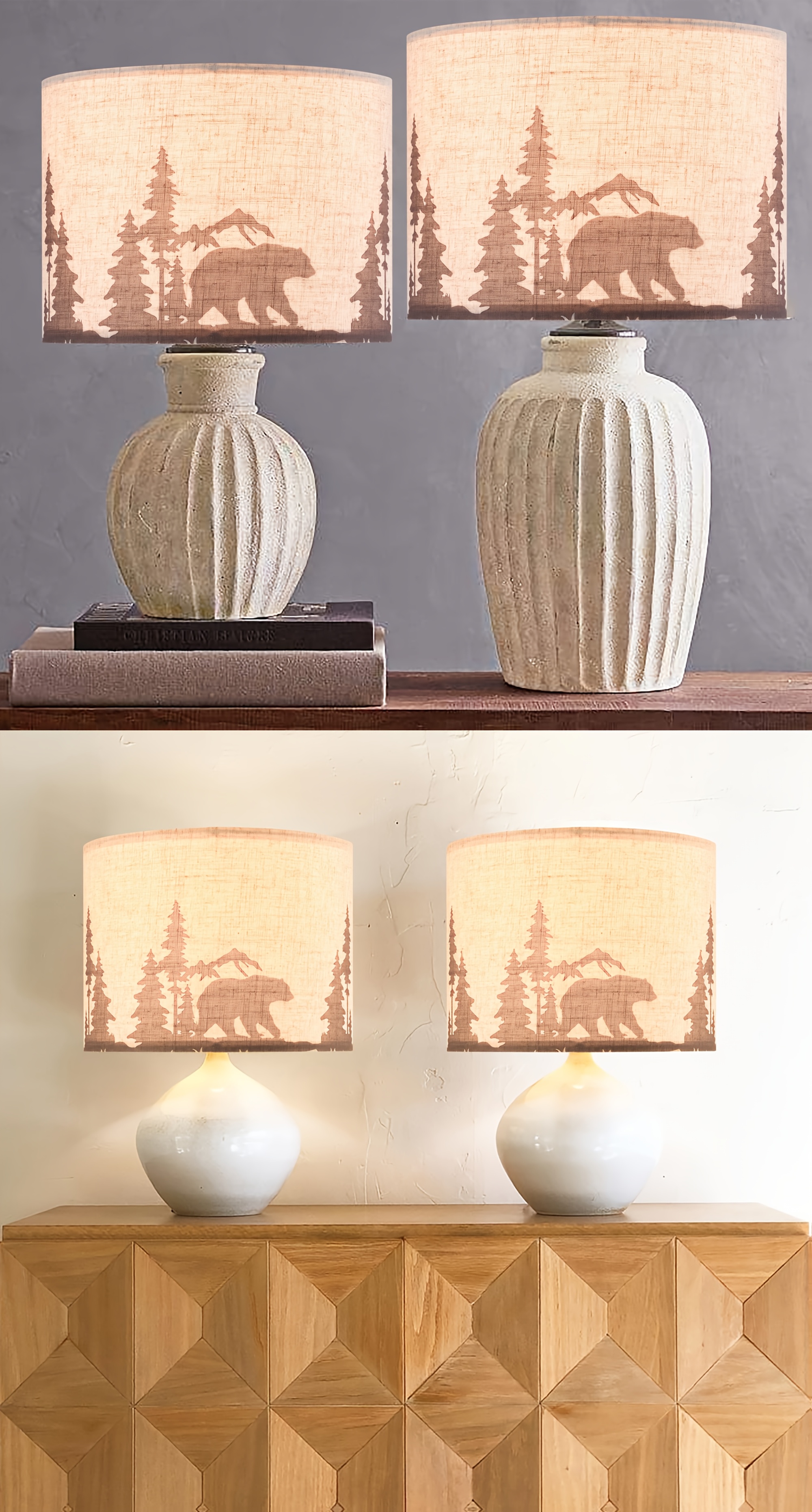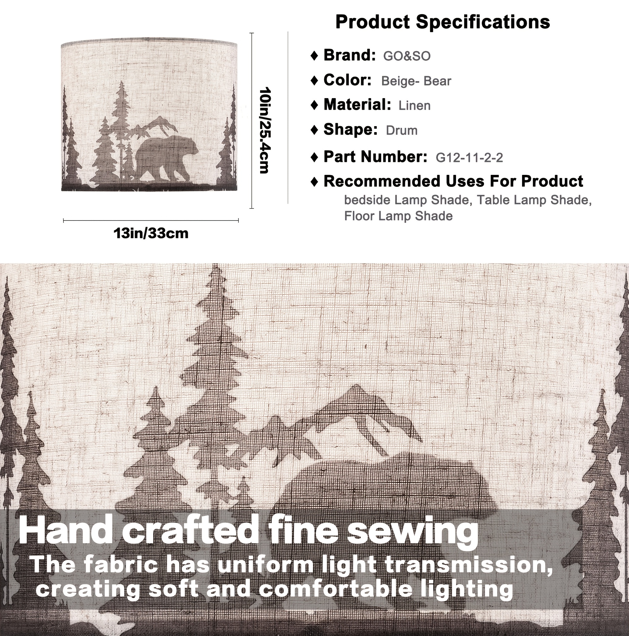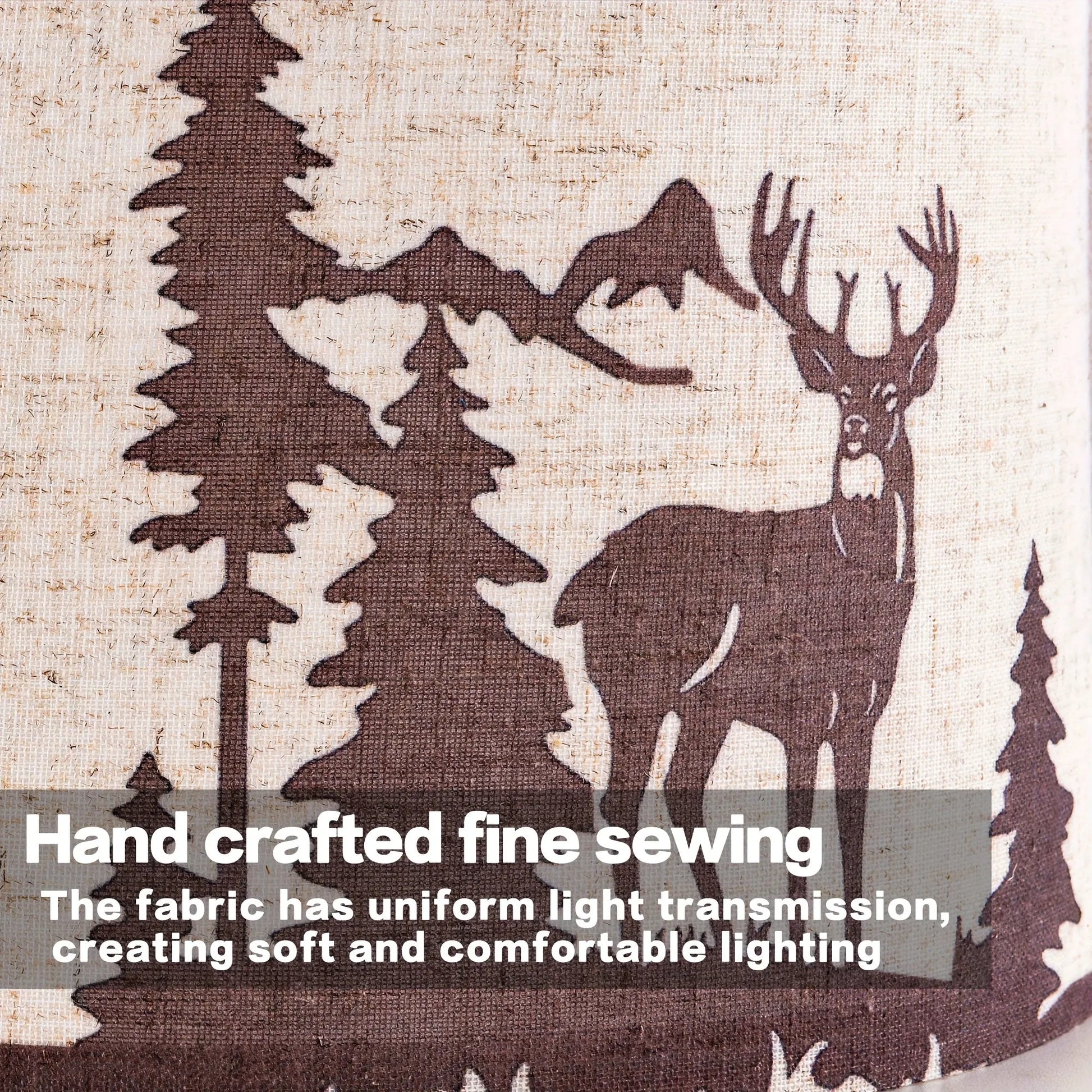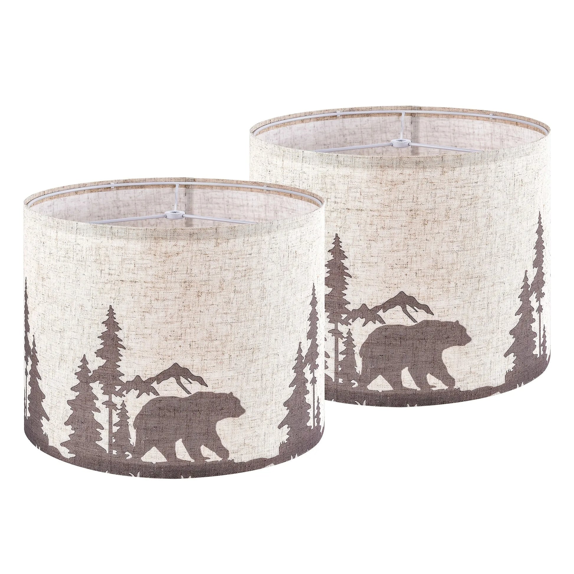 Medium Beige Bear And Deer Shades for Table Lamps - Top 13" X Base 13" X Height 10" (Spider Shape) Vintage Replacement Shades, Printed Natural Linen, Assembly Required