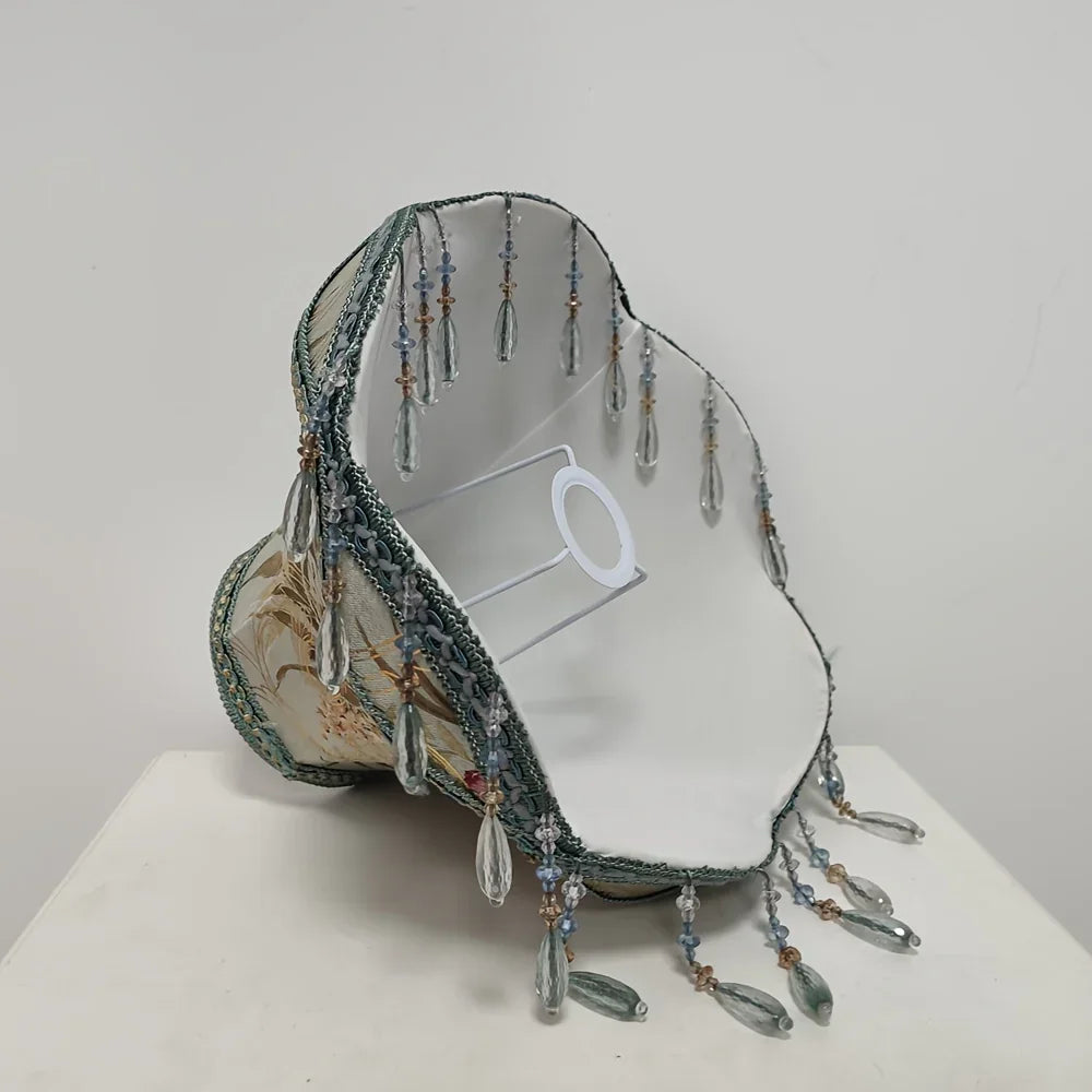 New Chinese-Style Printed Lampshade with Bead Fringe Trim