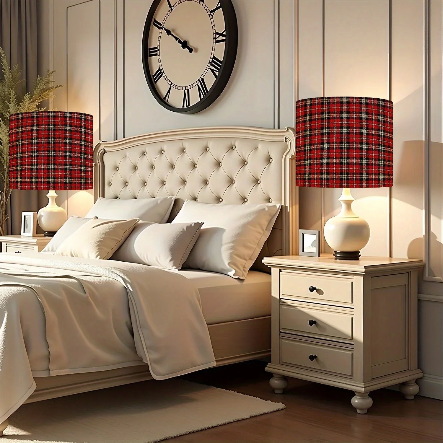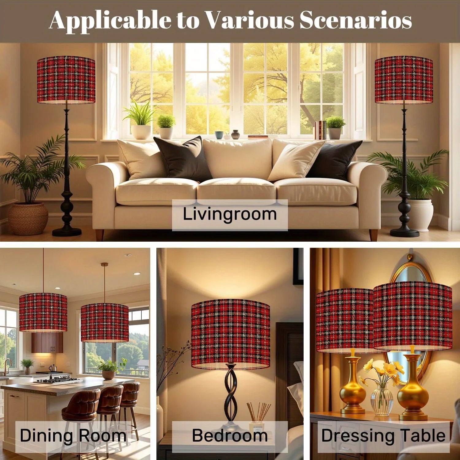 - Red Black Plaid with White Fabric Shades, Vintage Modern Table/Floor/Bedside Light Fixtures, Compatible with E26/E27/E27 Bases & Spider Light Fixtures, 13” Top/Bottom x 10” Height Coa